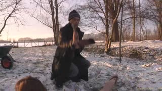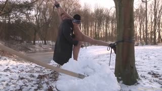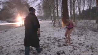 Insane winter domination with fully naked sex doll in lingerie
